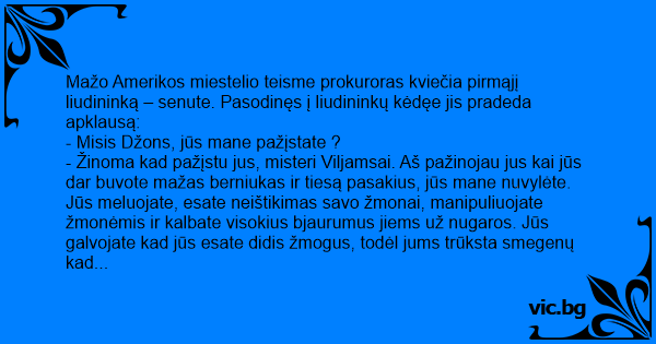 Staiga teisėjas paprašo abiejų teisininkų prieiti prie jo stalo ir pasilenkęs labai tyliai sako jiems: