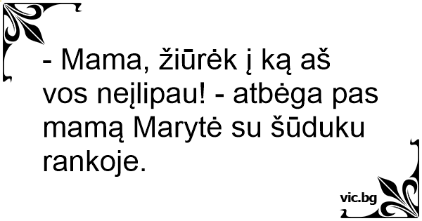 - Mama, žiūrėk į ką aš vos neįlipau! - atbėga pas mamą Marytė su šūduku rankoje.