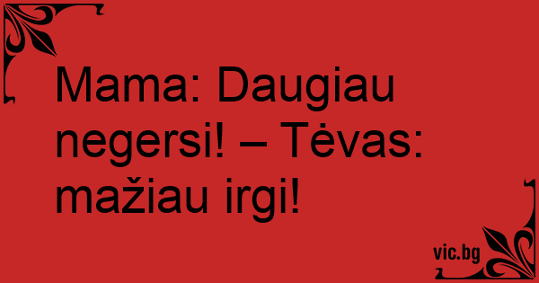 Mama: Daugiau negersi! – Tėvas: mažiau irgi!
