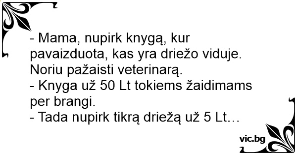 - Mama, nupirk knygą, kur pavaizduota, kas yra driežo viduje. Noriu pažaisti veterinarą.