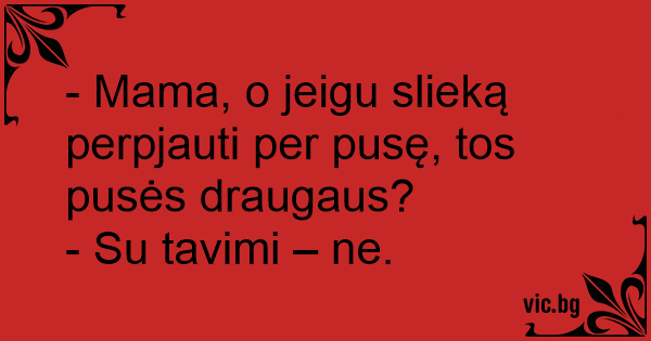 - Mama, o jeigu slieką perpjauti per pusę, tos pusės draugaus?