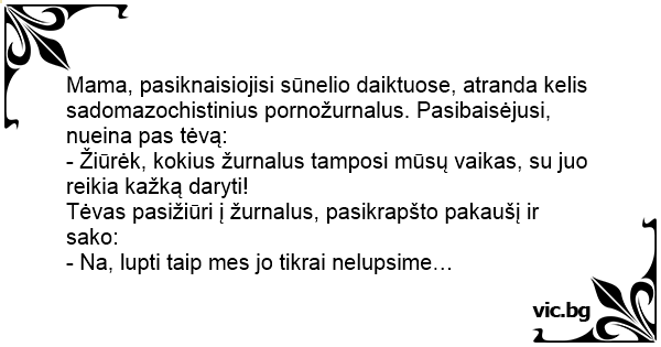 - Žiūrėk, kokius žurnalus tamposi mūsų vaikas, su juo reikia kažką daryti!
