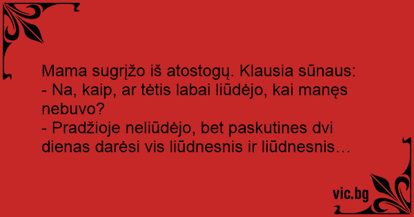 Mama sugrįžo iš atostogų. Klausia sūnaus: