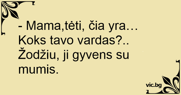 - Mama,tėti, čia yra…Koks tavo vardas?.. Žodžiu, ji gyvens su mumis.