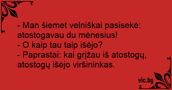 - Paprastai: kai grįžau iš atostogų, atostogų išėjo viršininkas.