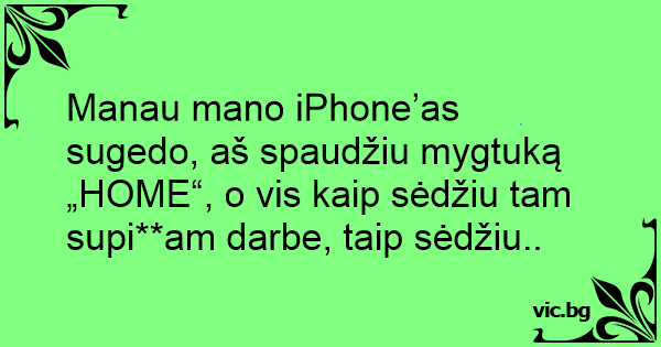 Manau mano iPhone’as sugedo, aš spaudžiu mygtuką „HOME“, o vis kaip sėdžiu tam supi**am darbe, taip sėdžiu..