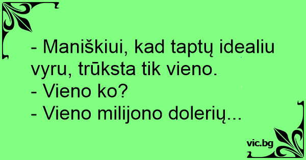 - Maniškiui, kad taptų idealiu vyru, trūksta tik vieno.