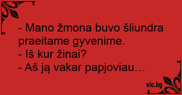 - Mano žmona buvo šliundra praeitame gyvenime.