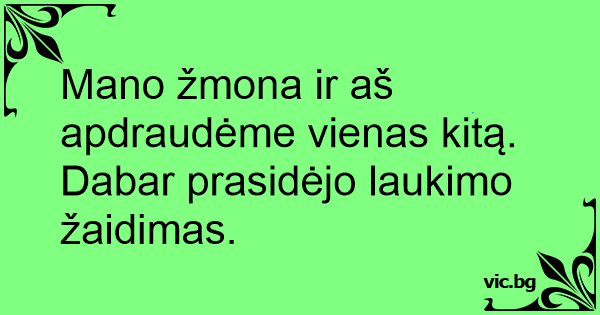 Mano žmona ir aš apdraudėme vienas kitą. Dabar prasidėjo laukimo žaidimas.