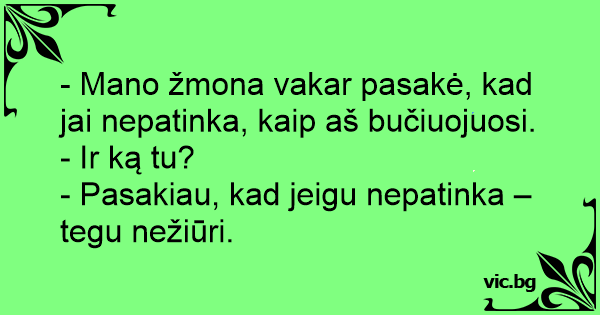 - Mano žmona vakar pasakė, kad jai nepatinka, kaip aš bučiuojuosi.