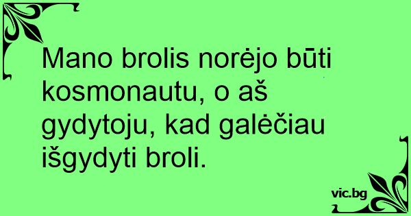 Mano brolis norėjo būti kosmonautu, o aš gydytoju, kad galėčiau išgydyti broli.