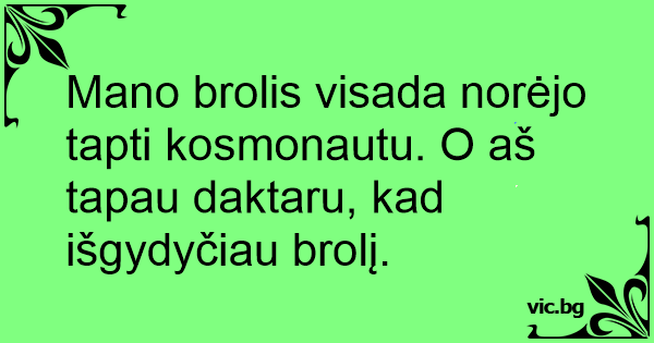 Mano brolis visada norėjo tapti kosmonautu. O aš tapau daktaru, kad išgydyčiau brolį.