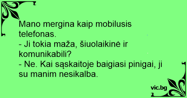 Mano mergina kaip mobilusis telefonas.