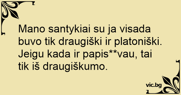 Mano santykiai su ja visada buvo tik draugiški ir platoniški. Jeigu kada ir papis**vau, tai tik iš draugiškumo.
