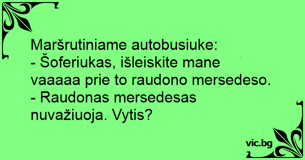 - Šoferiukas, išleiskite mane vaaaaa prie to raudono mersedeso.