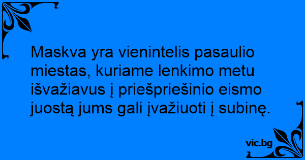 Maskva yra vienintelis pasaulio miestas, kuriame lenkimo metu išvažiavus į priešpriešinio eismo juostą jums gali įvažiuoti į subinę.