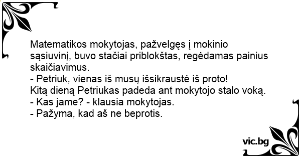 - Kas jame? - klausia mokytojas.