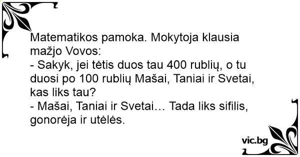 Matematikos pamoka. Mokytoja klausia mažjo Vovos:
