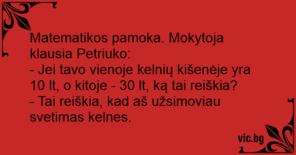 Matematikos pamoka. Mokytoja klausia Petriuko: