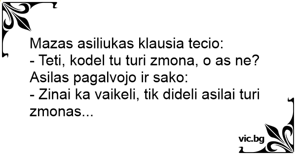 - Zinai ka vaikeli, tik dideli asilai turi zmonas...