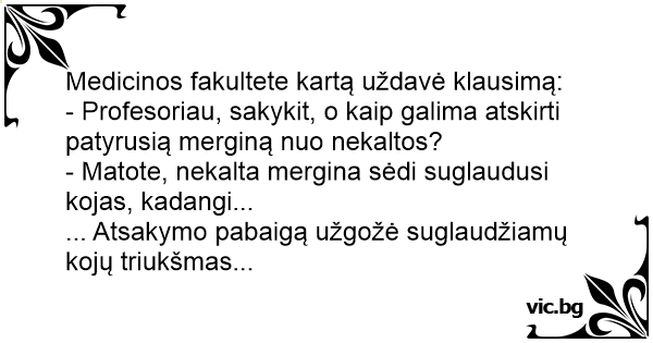 - Profesoriau, sakykit, o kaip galima atskirti patyrusią merginą nuo nekaltos?