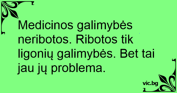 Medicinos galimybės neribotos. Ribotos tik ligonių galimybės. Bet tai jau jų problema.