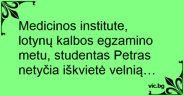 Medicinos institute, lotynų kalbos egzamino metu, studentas Petras netyčia iškvietė velnią…