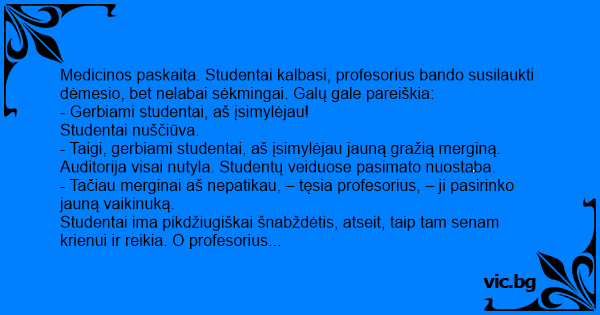 - Taigi, gerbiami studentai, aš įsimylėjau jauną gražią merginą.