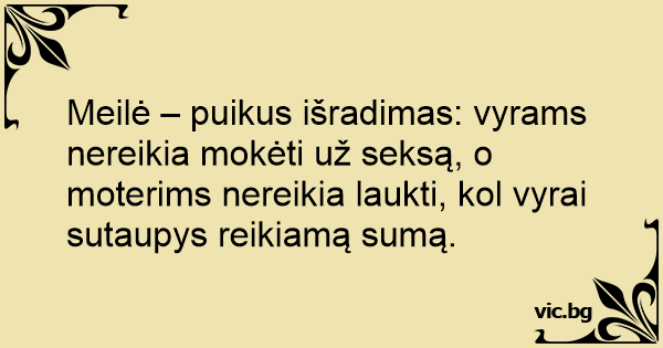 Meilė – puikus išradimas: vyrams nereikia mokėti už seksą, o moterims nereikia laukti, kol vyrai sutaupys reikiamą sumą.