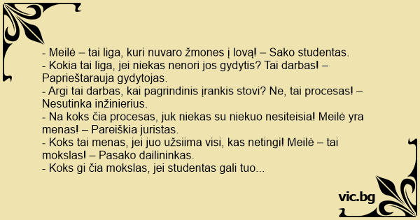 - Meilė – tai liga, kuri nuvaro žmones į lovą! – Sako studentas.
