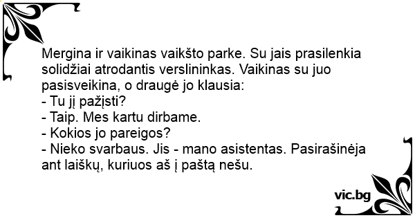 - Nieko svarbaus. Jis - mano asistentas. Pasirašinėja ant laiškų, kuriuos aš į paštą nešu.