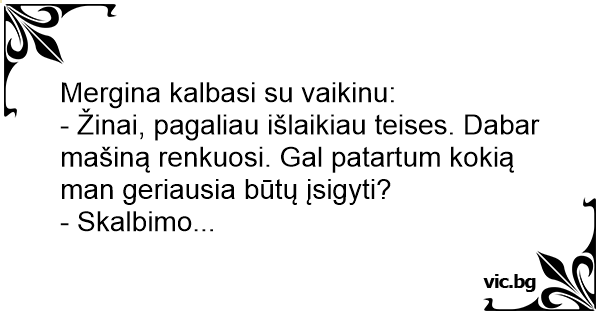 - Žinai, pagaliau išlaikiau teises. Dabar mašiną renkuosi. Gal patartum kokią man geriausia būtų įsigyti?