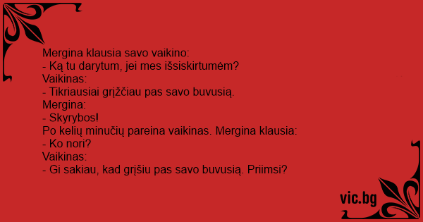Po kelių minučių pareina vaikinas. Mergina klausia: