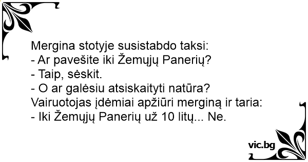 Vairuotojas įdėmiai apžiūri merginą ir taria: