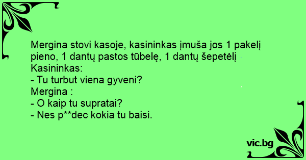 Mergina stovi kasoje, kasininkas įmuša jos 1 pakelį pieno, 1 dantų pastos tūbelę, 1 dantų šepetėlį