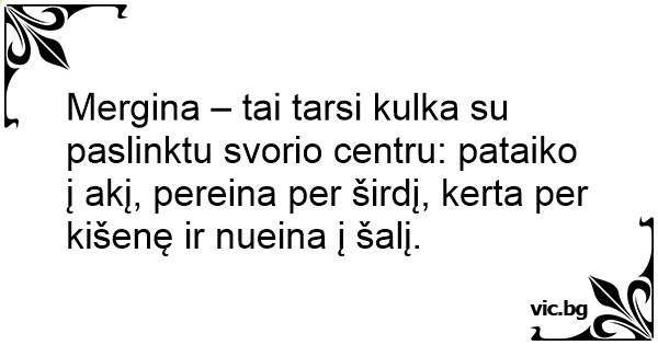 Mergina – tai tarsi kulka su paslinktu svorio centru: pataiko į akį, pereina per širdį, kerta per kišenę ir nueina į šalį.