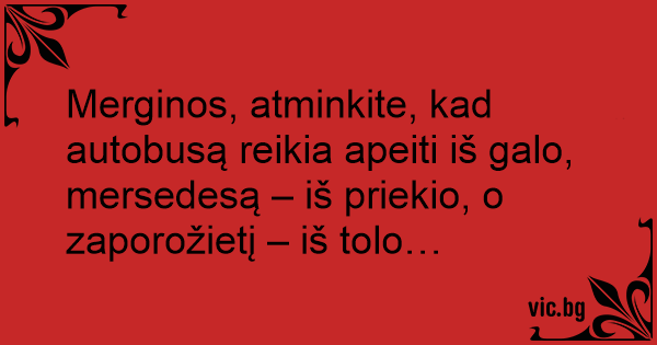 Merginos, atminkite, kad autobusą reikia apeiti iš galo, mersedesą – iš priekio, o zaporožietį – iš tolo…