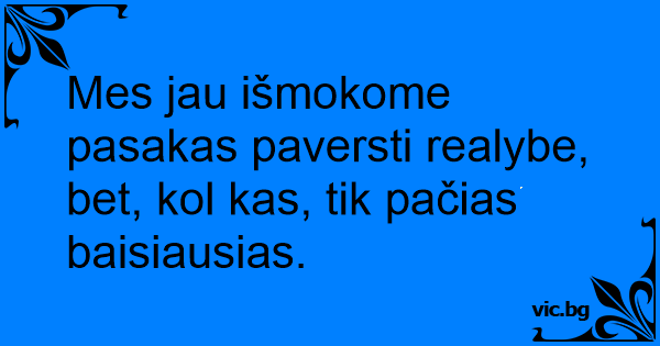 Mes jau išmokome pasakas paversti realybe, bet, kol kas, tik pačias baisiausias.