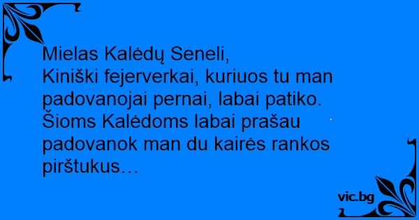 Kiniški fejerverkai, kuriuos tu man padovanojai pernai, labai patiko. Šioms Kalėdoms labai prašau padovanok man du kairės rankos pirštukus…