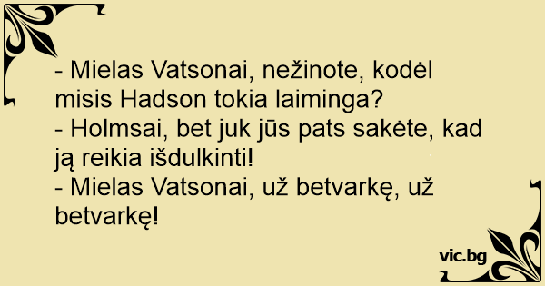 - Mielas Vatsonai, už betvarkę, už betvarkę!
