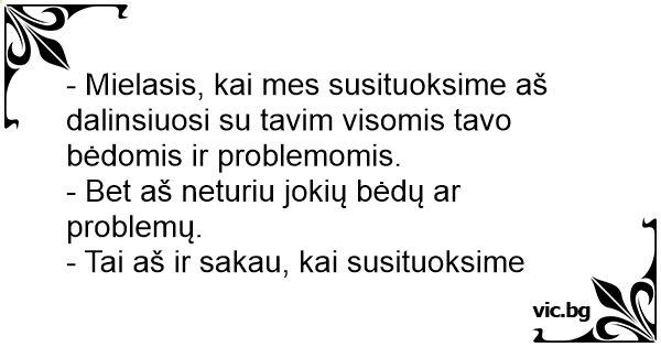 - Mielasis, kai mes susituoksime aš dalinsiuosi su tavim visomis tavo bėdomis ir problemomis.