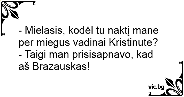 - Mielasis, kodėl tu naktį mane per miegus vadinai Kristinute?