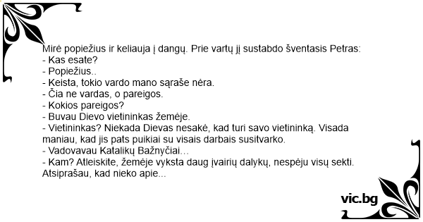 Mirė popiežius ir keliauja į dangų. Prie vartų jį sustabdo šventasis Petras: