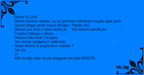 Diewo teismas wyksta ,na pa gal towo orentacija negaliu apie tawe spresti blogai geras buwai zmogus. Pasilik rojui