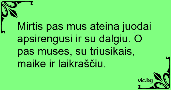Mirtis pas mus ateina juodai apsirengusi ir su dalgiu. O pas muses, su triusikais, maike ir laikraščiu.