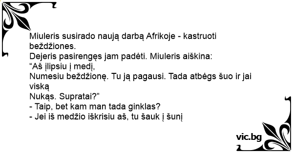 - Jei iš medžio iškrisiu aš, tu šauk į šunį