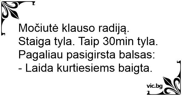 Močiutė klauso radiją. Staiga tyla. Taip 30min tyla. Pagaliau pasigirsta balsas: