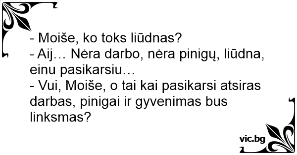 - Vui, Moiše, o tai kai pasikarsi atsiras darbas, pinigai ir gyvenimas bus linksmas?