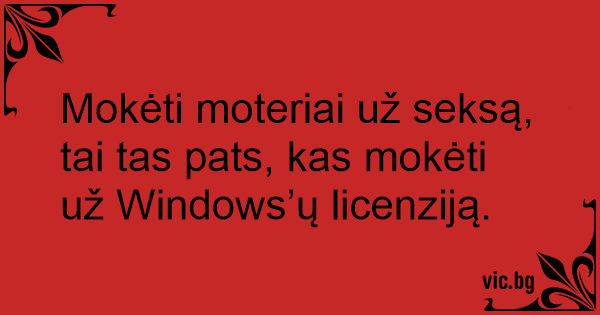 Mokėti moteriai už seksą, tai tas pats, kas mokėti už Windows’ų licenziją.