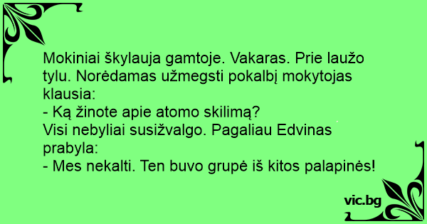 Mokiniai škylauja gamtoje. Vakaras. Prie laužo tylu. Norėdamas užmegsti pokalbį mokytojas klausia: